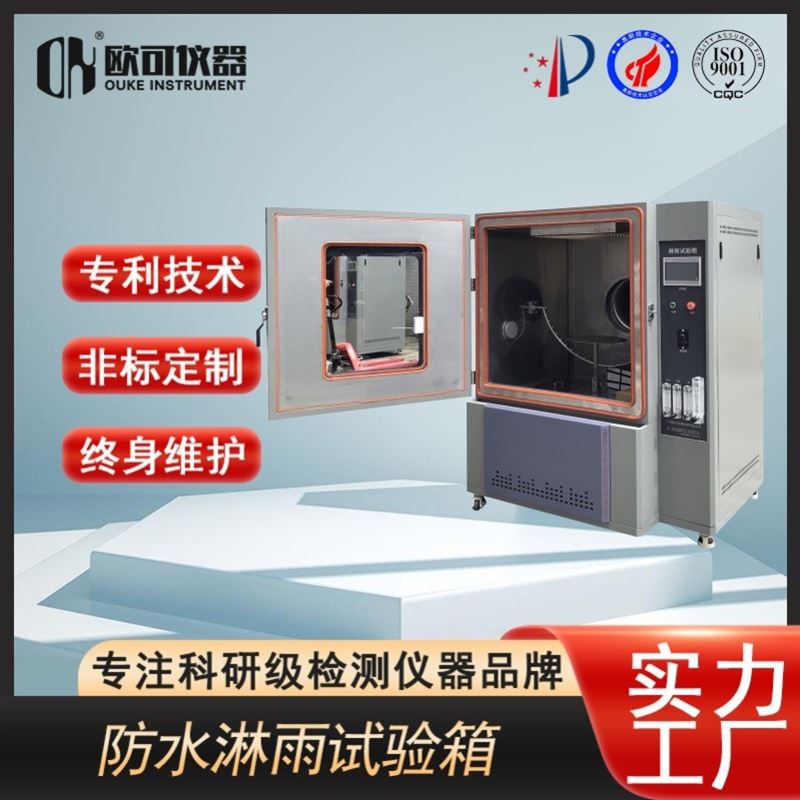 工作原理: 通过水泵将水箱中的水加压,通过特定的喷嘴(如莲蓬式、扇形、针式等)形成规定的雨滴大小、水压和流量,以特定的角度和时间喷洒在样品表面。样品通常放置在可旋转的工作台(转台)上,以确保受水。